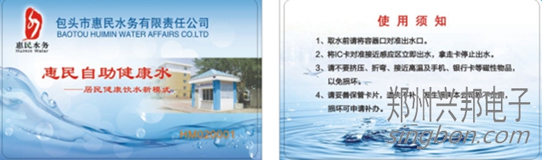 包頭市惠民水務公司使用IC卡水控機安裝在售水機上,居民辦理一張水卡,在卡里充值過錢后就可以在售水機上面安裝好的IC卡水控機上刷卡取水,居民喝水也更加的方便快捷。
