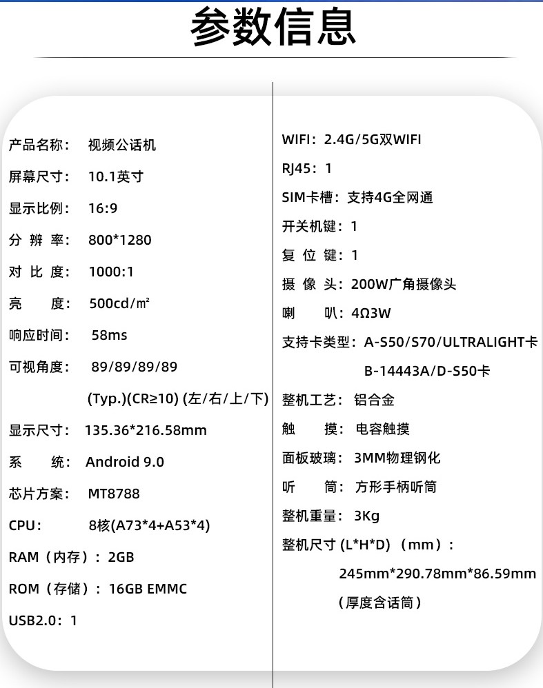 適用場(chǎng)景:10.1寸視頻公話機(jī) 校園視頻電話機(jī) 微信視頻電話機(jī)