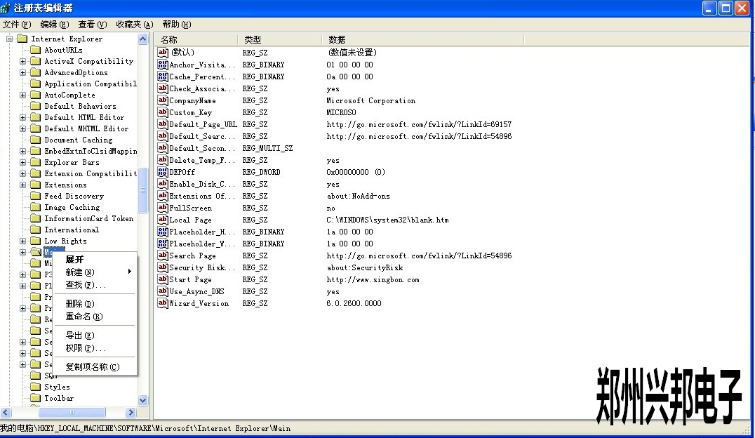 2. 在彈出來(lái)的“注冊(cè)表編輯器”界面上,選擇HEEY_LOCAL_MACHINE\SOFTWARE\Microsoft\Internet Explorer\Main