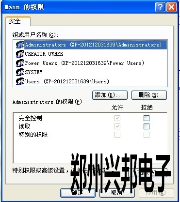 3. 選中Main右擊,選擇“權(quán)限”選項(xiàng),在彈出來(lái)的“Main的權(quán)限”界面下,選中組或用戶(hù)名稱(chēng)下內(nèi)容,在“完全控制”選項(xiàng)中,在“允許”下方打“V "