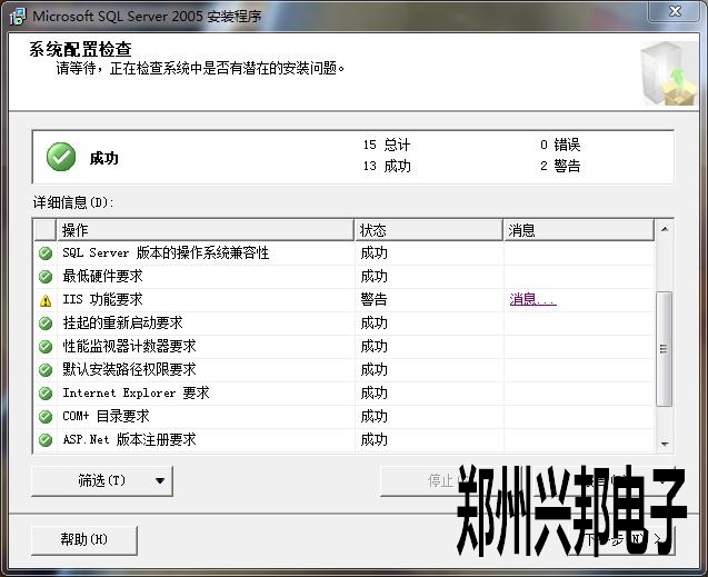 win7系統(tǒng)2005數(shù)據(jù)庫(kù)安裝時(shí)提示IIS功能要求是警告