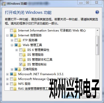 此時(shí)把IIS管理控制臺(tái)勾選上,按確定鍵即可。