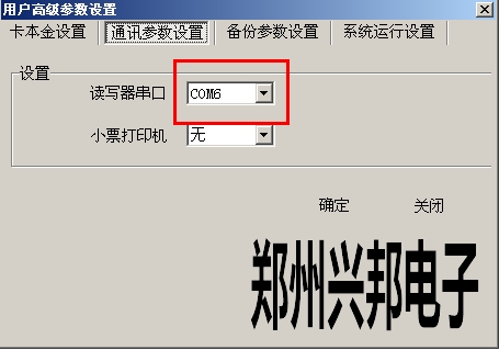 解決方法:經(jīng)詢問,電腦重裝過軟件,重裝后讀卡就出現(xiàn)這個錯誤了,軟件重裝后要重新設(shè)置讀卡器的端口,設(shè)置讀卡器端口是在軟件中的 系統(tǒng)管理-用戶參數(shù)設(shè)置-用戶高級參數(shù)設(shè)置-通訊參數(shù)設(shè)置-讀寫器串口中,如下圖所示: