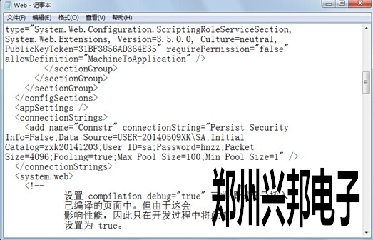 軟件是通過webservice來調(diào)用中心庫(kù)的.所以可以在webservice里找到正在使用的中心庫(kù),首先找到創(chuàng)建webservice的路徑,然后以記事本方式打開Web,到<add name="Connstr" connectionString="Persist Security Info=False;Data Source=USER-20140509XK\SA;Initial Catalog=zxk20141203;User ID=sa;Password=hnzz;Packet Size=4096;Pooling=true;Max Pool Size=100;Min Pool Size=1" />Initial Catalog=zxk20141203,所以正在使用遙就是zxk20141203.
