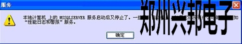 3.出現“本地計算機上的MSSQLSERVER服務啟動后又停止了。