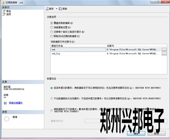 把導入的bak文件勾選上,在指定了要還原的*.bak文件以后,選項---->設(shè)置還原選項--->覆蓋現(xiàn)有數(shù)據(jù)庫(選上),其它默認。
