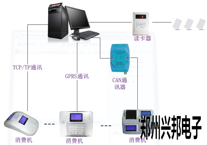 IC卡中文液晶消費(fèi)機(jī)的網(wǎng)絡(luò)布線(xiàn)圖