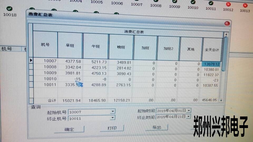 上面這個(gè)圖10號(hào)機(jī)早班午班都是負(fù)數(shù),首先查一下這個(gè)時(shí)間段的消費(fèi)明細(xì)表里的記錄。