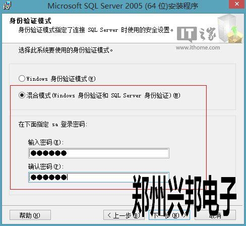 5、選擇混合模式登陸,并輸入登陸數(shù)據(jù)庫(kù)的密碼