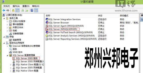8、當(dāng)完成SQL Server 2005安裝后,先不啟動(dòng)套件,而是先強(qiáng)制停止SQL Server的服務(wù)項(xiàng)目。(進(jìn)入計(jì)算機(jī)管理,選擇SQL Server配置管理器,禁止SQL Server 2005相應(yīng)的服務(wù)項(xiàng)目)