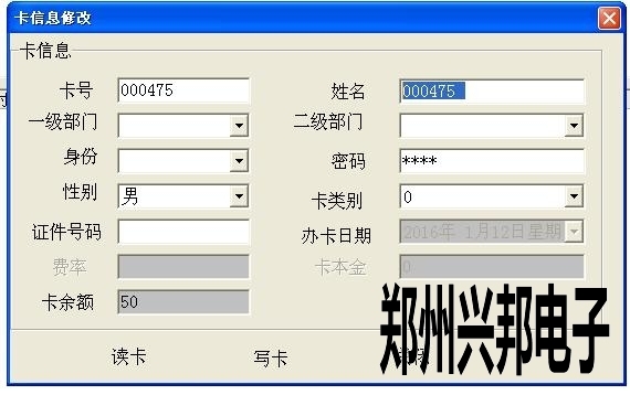 2、先把卡放IC卡讀卡器上,讀卡,出現(xiàn)卡信息后,直接修改卡信息。(注:卡號(hào)是不能修改的??ㄌ?hào)只有在發(fā)行的時(shí)候來(lái)修改,一但發(fā)行就不能修改了。)