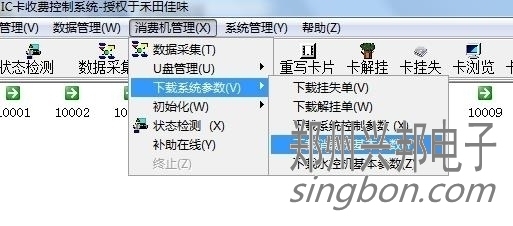 2、設(shè)好后要把機(jī)器連通。狀態(tài)檢測是綠色的對勾。然后下載一下參數(shù)。消費(fèi)機(jī)管理--消費(fèi)機(jī)基本參數(shù)。