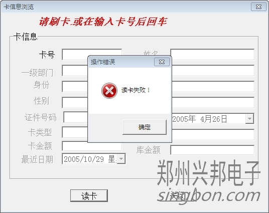 [文章內(nèi)容簡介]:在讀卡器上讀卡時,操作錯誤提示:讀卡失?。?/div>