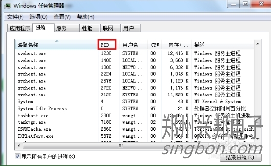 或者是我們打開任務(wù)管理器,切換到進(jìn)程選項(xiàng)卡,在PID一列查看2720對(duì)應(yīng)的進(jìn)程是誰,如果看不到PID這一列,如下圖: