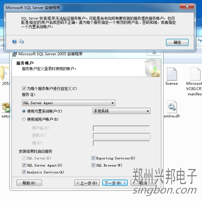 安裝SQL Server2005時提示安裝程序無法驗證服務(wù)帳戶